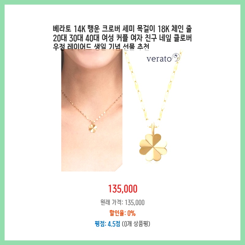 베라토목걸이, 행운목걸이, 네잎클로버, 14k목걸이, 선물추천, 여자친구선물, 커플목걸이