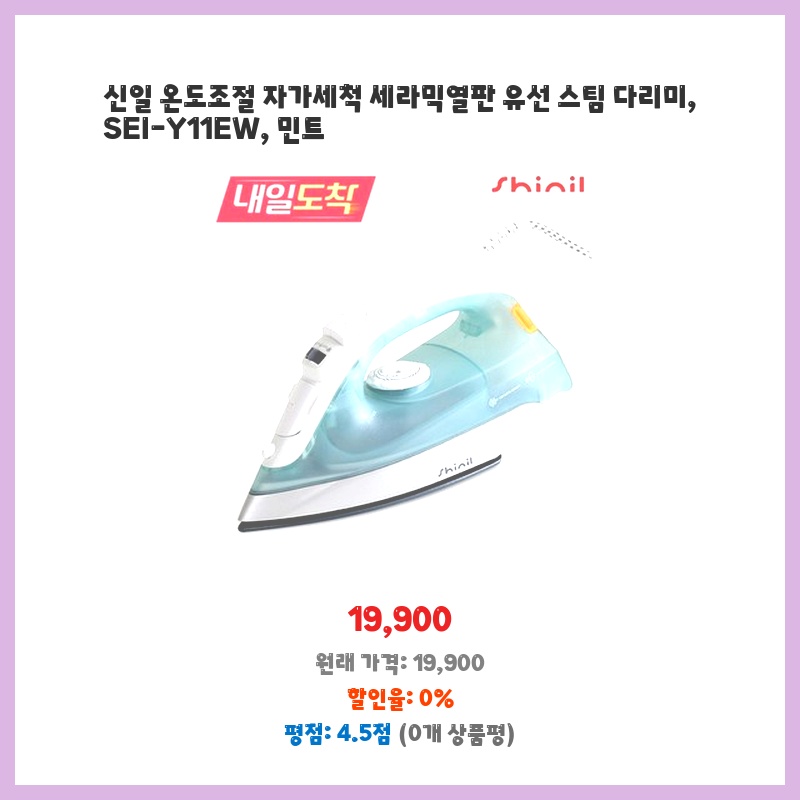 신일 온도조절 자가세척 세라믹열판 유선 스팀 다리미, SEI-Y11EW, 민트