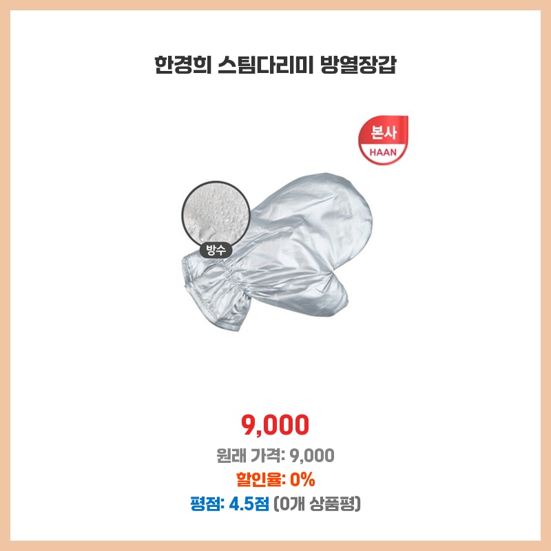 한경희 스팀다리미를 사용하며 뜨거운 열판에 손이 닿을까 걱정이었는데, 방열장갑 덕분에 안전하게 다림질을 할 수 있게 되었습니다. 9,000원이라는 저렴한 가격에 안전성을 확보할 수 있어 만족스럽습니다. 두꺼운 소재라 다리미 열기에도 안전하고, 손목까지 보호해주는 길이도 좋습니다.