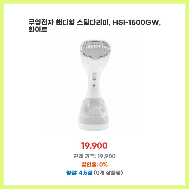 쿠잉전자 핸디형 스팀다리미, HSI-1500GW, 화이트