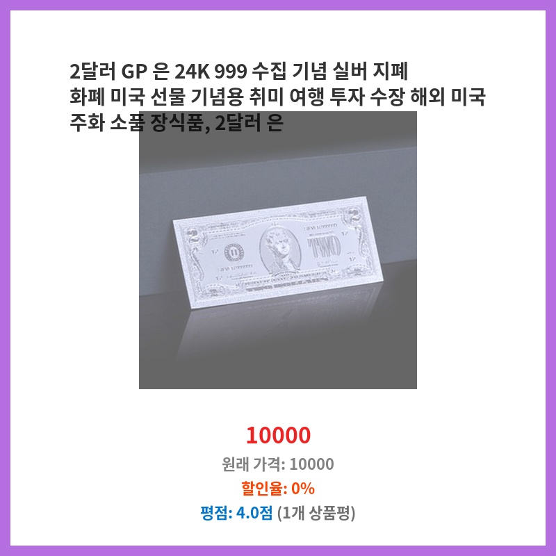 24K 도금된 2달러 은화는 독특한 디자인과 희소성으로 수집 가치가 높습니다. 기념품이나 선물용으로도 좋고, 고급스러운 장식 소품으로 활용 가능합니다. 은의 가치 상승 가능성도 고려했습니다.
