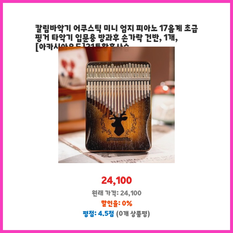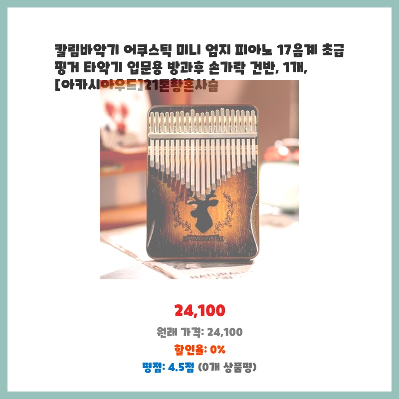 칼림바악기 어쿠스틱 미니 엄지 피아노 17음계 초급 핑거 타악기 입문용 방과후 손가락 건반, 1개, [아카시아우드]21톤황혼사슴