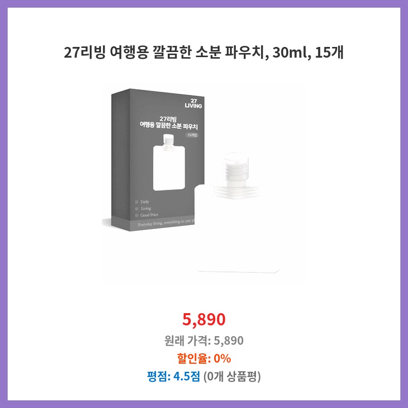 여행갈 때마다 화장품 용기 때문에 짐이 많았는데, 30ml 용량 15개의 소분 파우치가 깔끔하게 정리돼서 좋았어요. 가격도 부담없고 휴대성도 편리해서 만족합니다. 용량도 적당하고 갯수도 충분해서 여러가지 화장품을 나눠 담기에 좋았습니다.