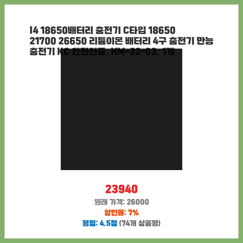 다양한 사이즈의 배터리를 동시에 충전할 수 있는 4구 충전기가 필요했습니다. KC 안전인증까지 받아 안전성이 높고, C타입 포트를 사용하는 점도 편리해 보였습니다. 가격 대비 기능이 만족스러워 구매했습니다.
