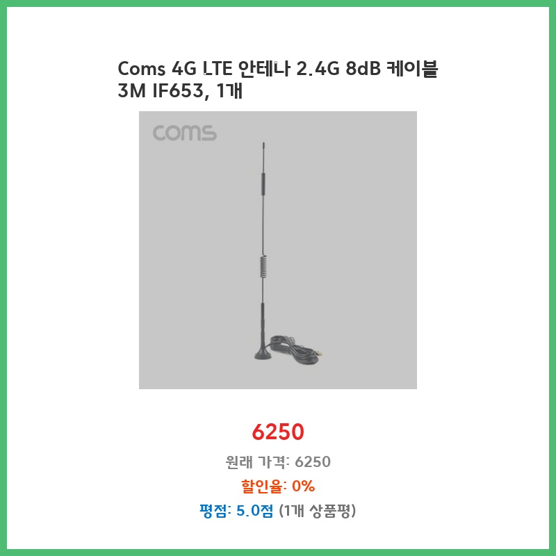 Coms 4G LTE 안테나 2.4G 8dB 케이블 3M IF653, 1개