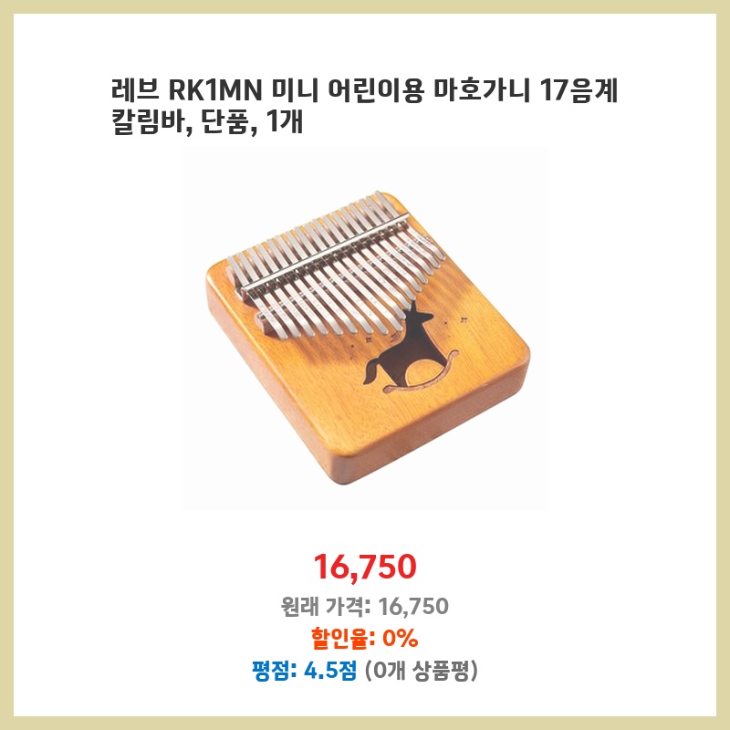 휴대성이 좋고 가격이 부담스럽지 않아 입문용 칼림바로 적합하다고 생각했습니다. 17키라 연주할 수 있는 곡의 폭도 넓고, 디자인도 예뻐서 만족스러웠습니다. 소리가 은은하고 맑아서 좋았습니다.