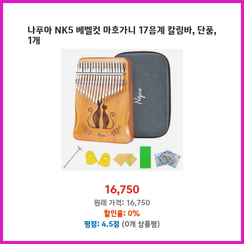 나푸아 NK5 베벨컷 마호가니 17음계 칼림바, 단품, 1개