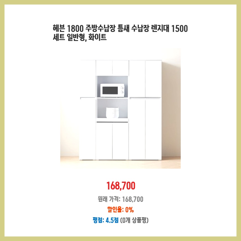 헤븐 1800 주방수납장 틈새 수납장 렌지대 1500 세트 일반형, 화이트