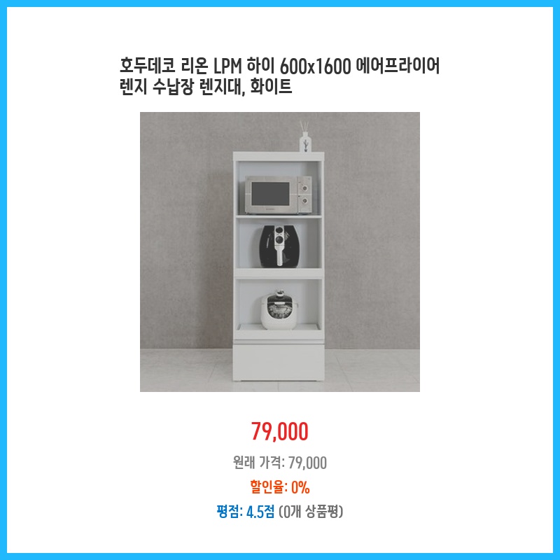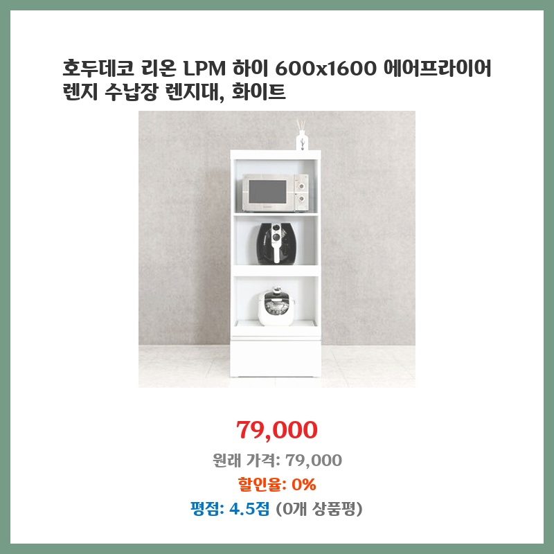 좁은 주방에 렌지와 에어프라이어를 깔끔하게 수납할 수 있어서 구매했습니다. 넉넉한 수납공간과 깔끔한 화이트 색상이 마음에 들었고, LPM 소재라 관리도 편리할 것 같아 기대됩니다. 600x1600 사이즈도 우리 집 주방에 딱 맞는 크기였습니다.