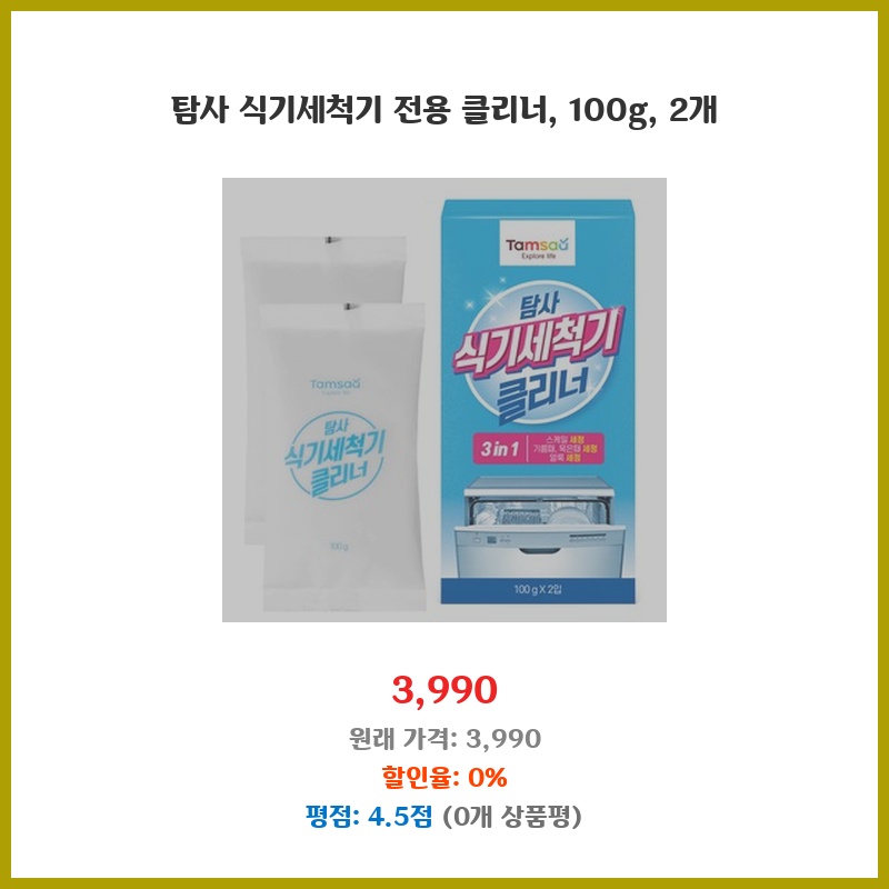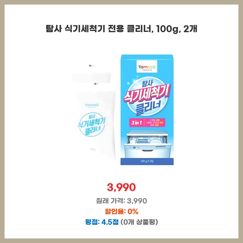 식기세척기 청소가 번거로워서 구매했습니다. 100g에 두 개라 오래 쓸 수 있고, 전용 클리너라 세척력이 뛰어날 것으로 기대됩니다. 설명서도 자세해서 사용이 편할 것 같아요.