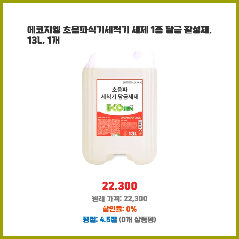 에코지엥 초음파식기세척기 세제 1종 담금 활성제, 13L, 1개