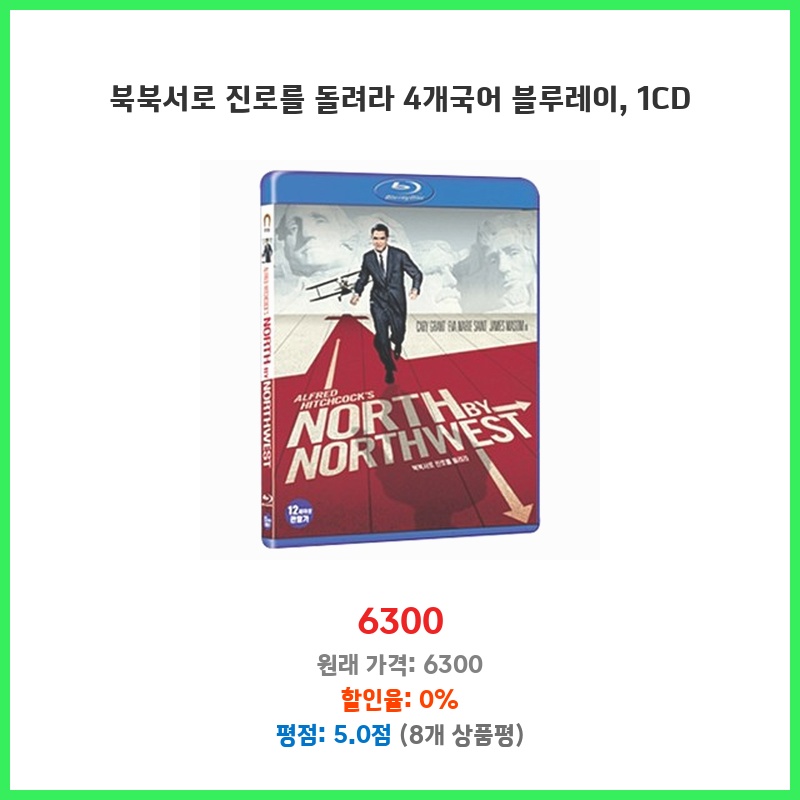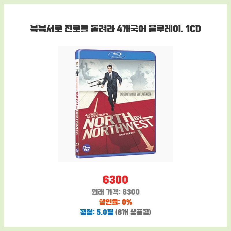 북북서로, 진로를돌려라, 블루레이, 4개국어, 영화, 1CD, NorthByNorthwest