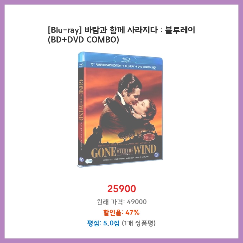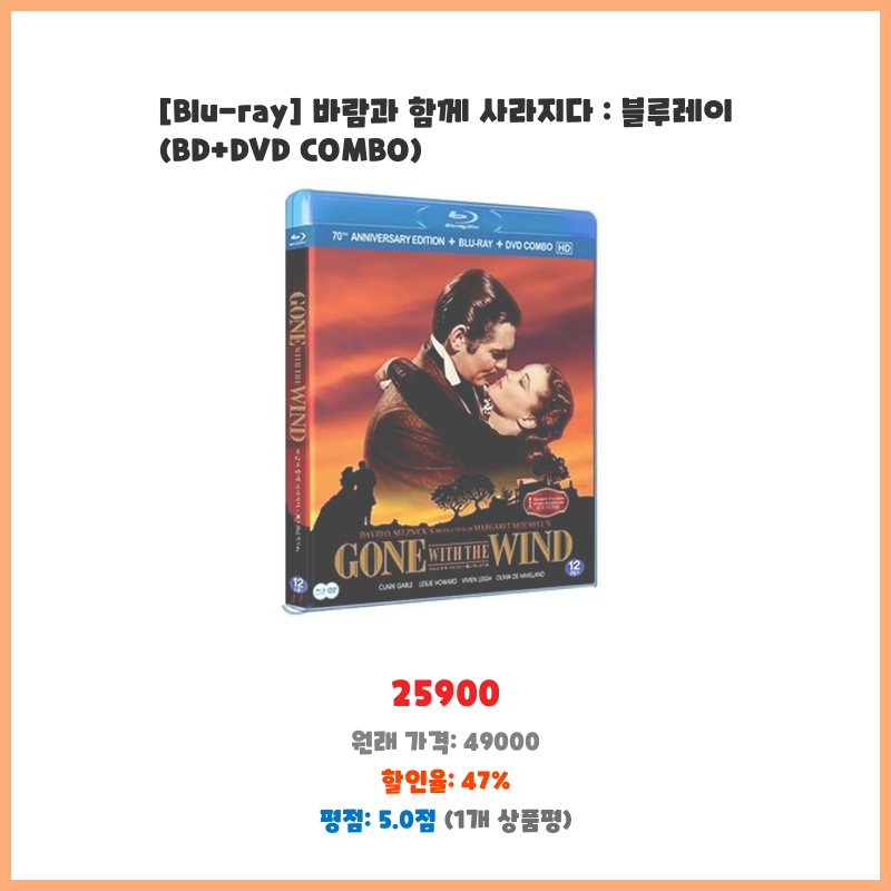 [Blu-ray] 바람과 함께 사라지다 : 블루레이 (BD+DVD COMBO)