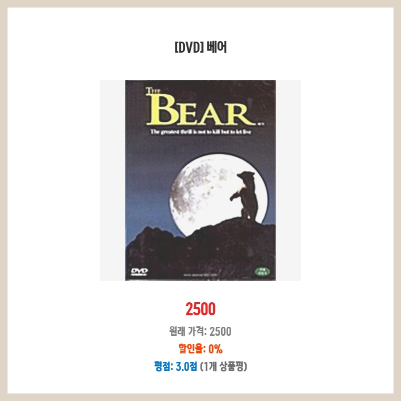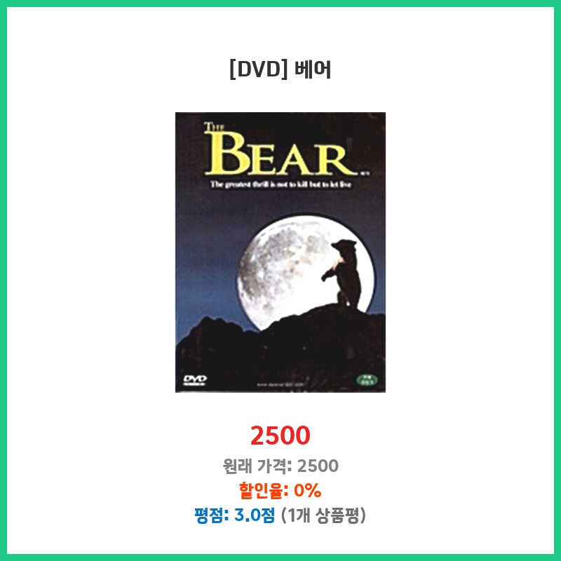 2500원이라는 저렴한 가격에 명작 애니메이션 베어를 소장할 수 있다는 점이 매력적이었습니다. DVD 화질도 괜찮고, 추억의 애니메이션을 다시 감상할 수 있어 구매했습니다.