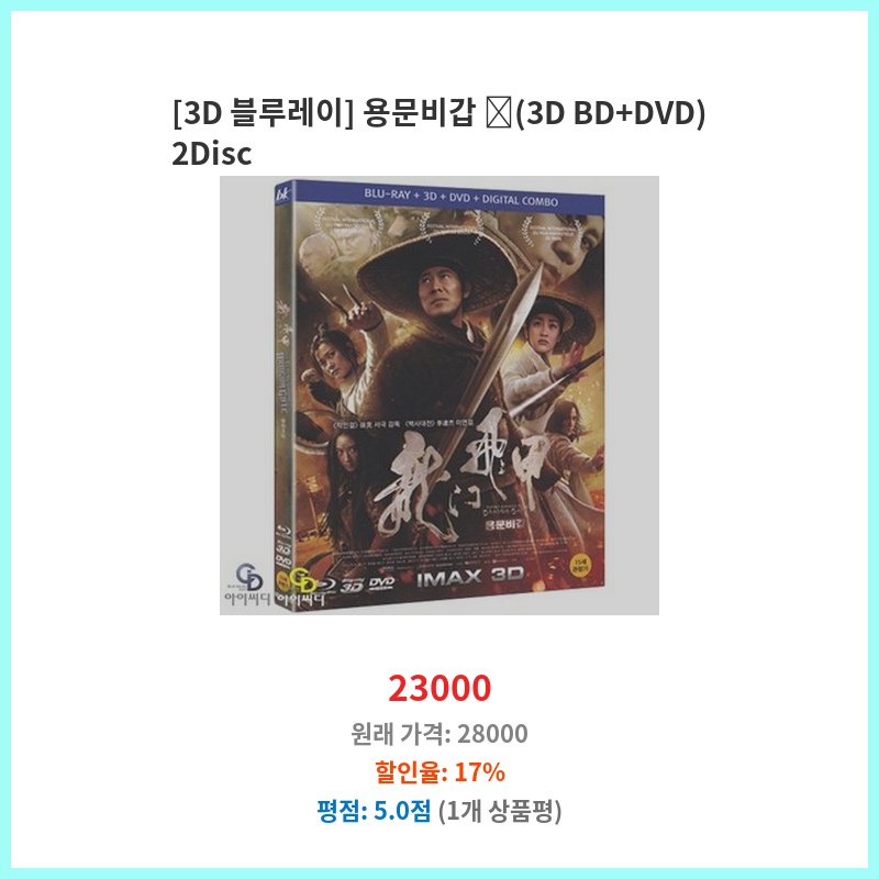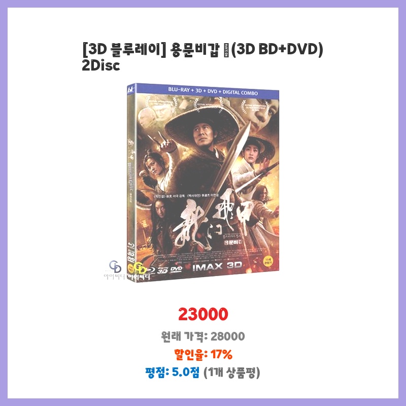 3D 블루레이로 제작되어 웅장한 스케일의 용문비갑을 생생하게 즐길 수 있다는 점이 매력적이었습니다. DVD도 포함되어 있어 다양한 환경에서 감상 가능한 점도 좋았습니다. 화질과 음향에 대한 기대감이 컸습니다.