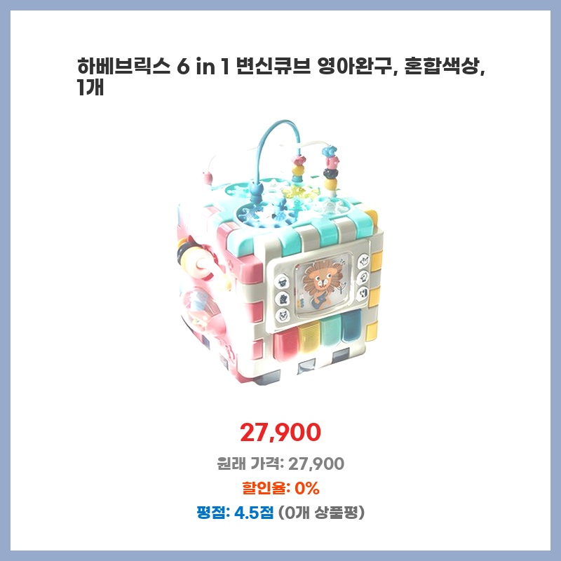 아기가 6가지 모양으로 변신하는 큐브를 가지고 신나게 놀아요. 색깔도 예쁘고, 만져보니 재질도 부드러워 안심하고 사용 중입니다. 만족스러운 구매였습니다!