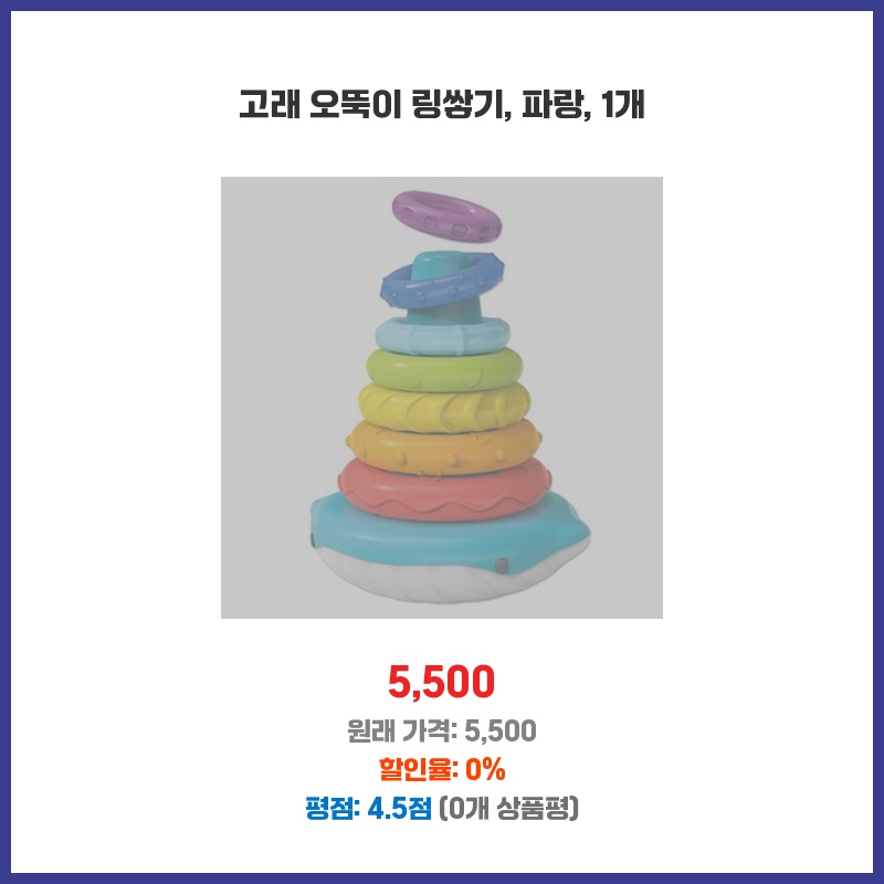 아이의 소근육 발달을 위해 링 쌓기 장난감을 찾던 중 7단으로 구성된 넉넉한 구성과 혼합 색상의 시각적 자극이 마음에 들어 구매했습니다. 안전한 소재로 만들어졌다는 점도 구매 결정에 영향을 미쳤습니다.