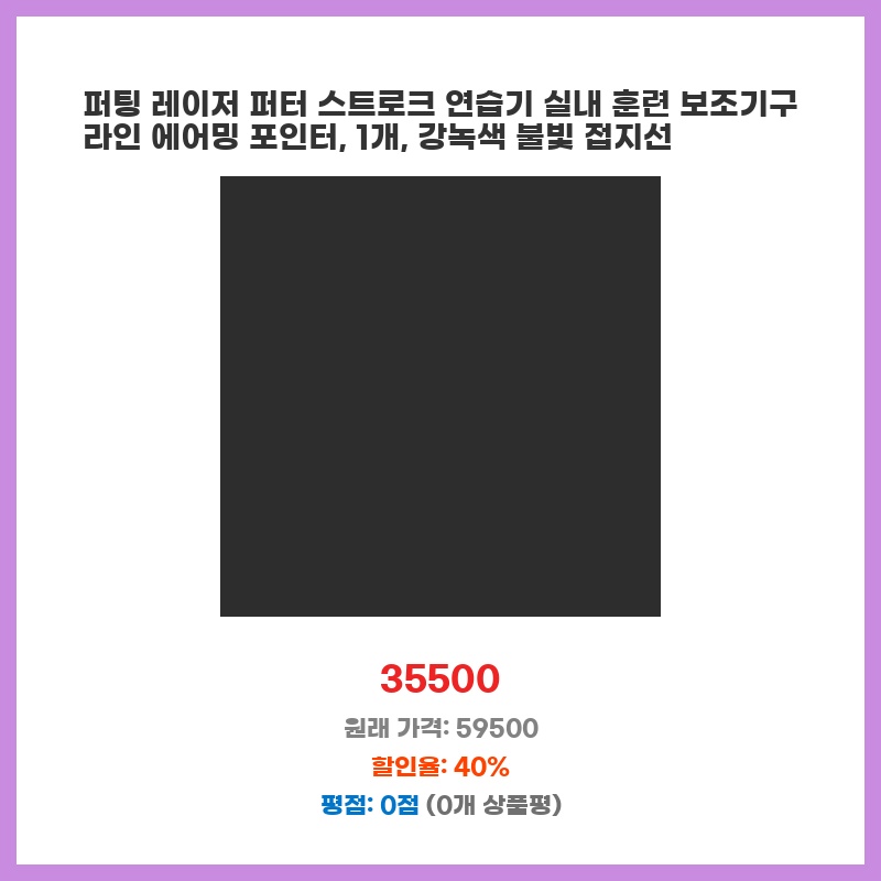 퍼팅 연습이 부족해서 구매했습니다. 실내에서도 편리하게 사용할 수 있고, 레이저 라인으로 정확한 퍼팅 방향을 확인하며 연습할 수 있어 실력 향상에 도움이 될 것 같아 기대됩니다. 강도 조절 기능은 없지만, 녹색 불빛이 눈에 잘 띄어 좋습니다.