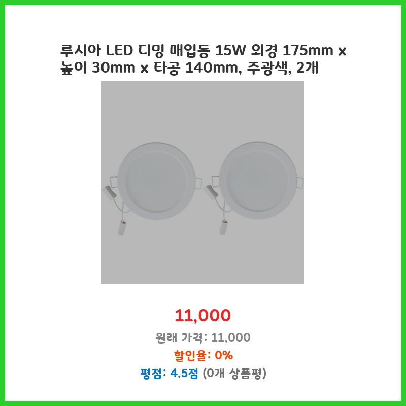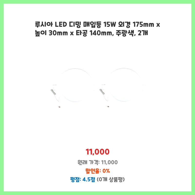 루시아 LED 디밍 매입등 15W 외경 175mm x 높이 30mm x 타공 140mm, 주광색, 2개