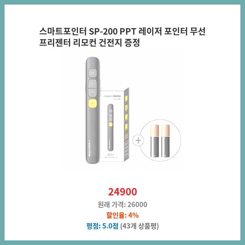 스마트포인터 SP-200 PPT 레이저 포인터 무선 프리젠터 리모컨 건전지 증정