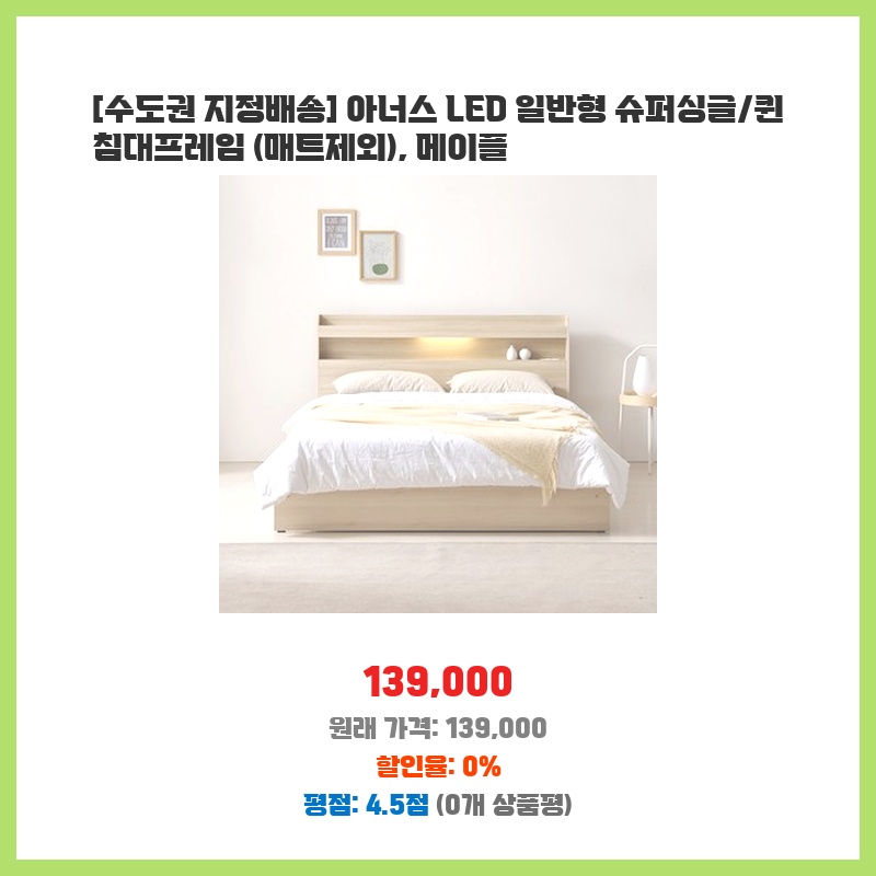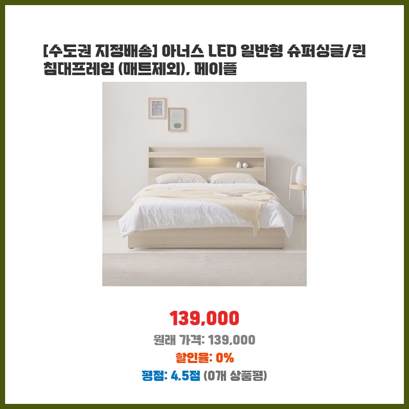 깔끔한 메이플 색상과 슈퍼싱글 사이즈가 마음에 들어 구매했습니다. LED 조명이 있어 침실 분위기 연출에도 좋고, 가격 대비 품질이 만족스러워요. 조립도 어렵지 않았습니다.