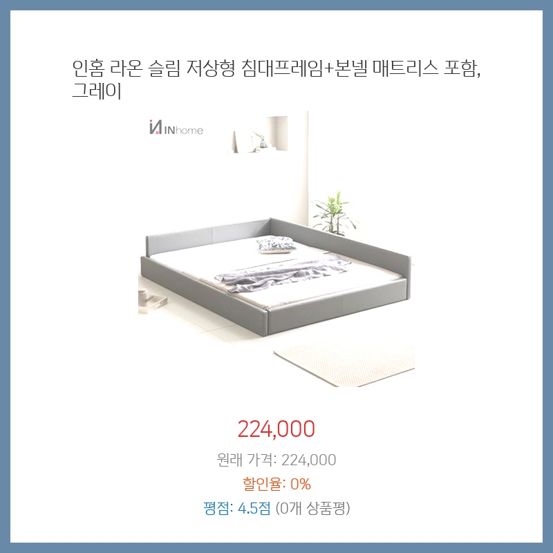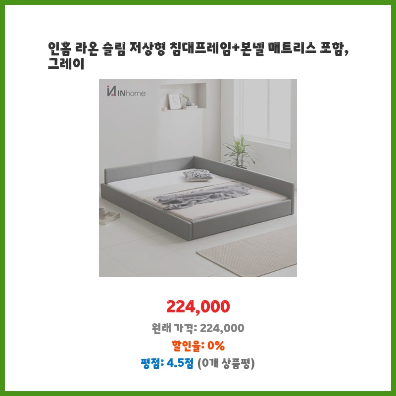인홈라온침대, 저상형침대, 슬림침대, 본넬매트리스, 그레이침대, 침대프레임, 인홈가구