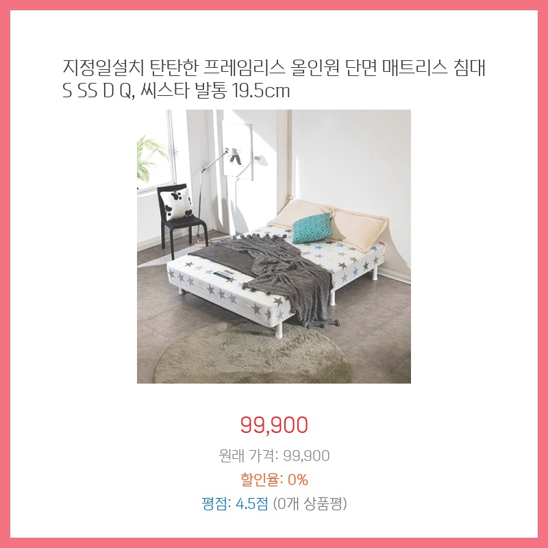 지정일설치 탄탄한 프레임리스 올인원 단면 매트리스 침대 S SS D Q, 씨스타 발통 19.5cm