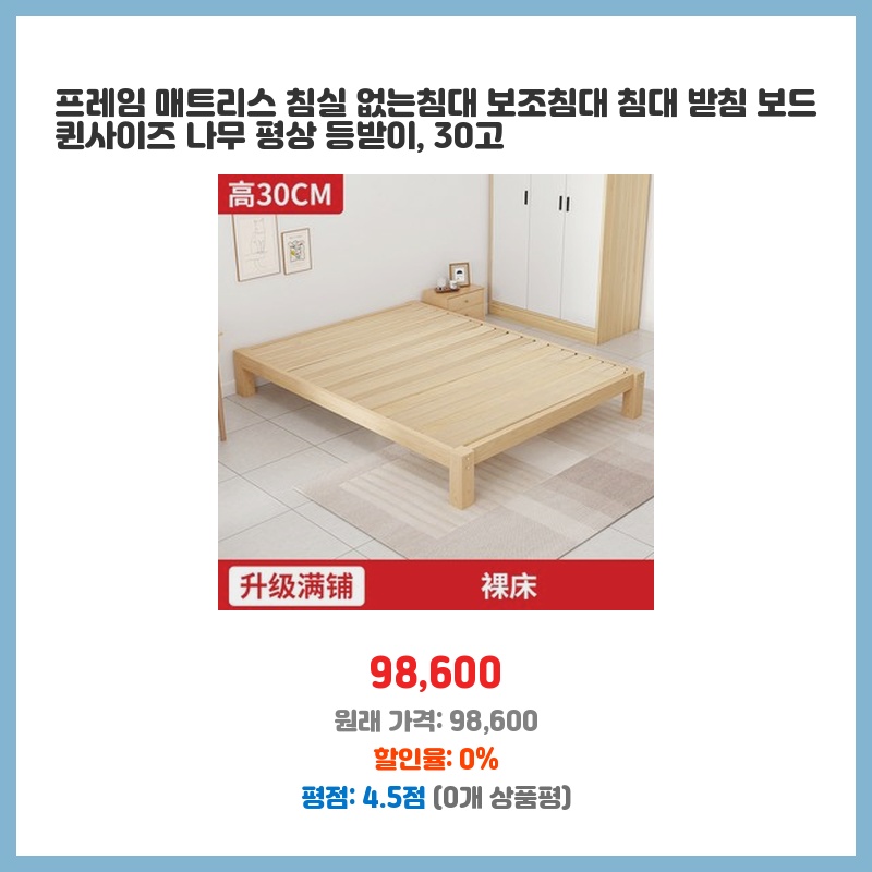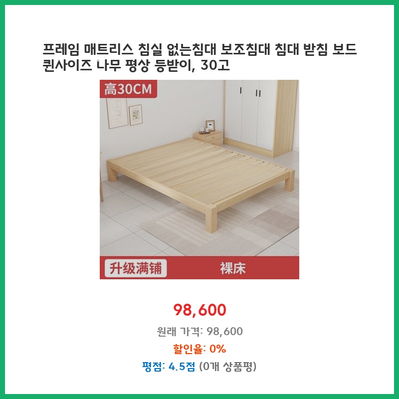 프레임 매트리스 침실 없는침대 보조침대 침대 받침 보드 퀸사이즈 나무 평상 등받이, 30고