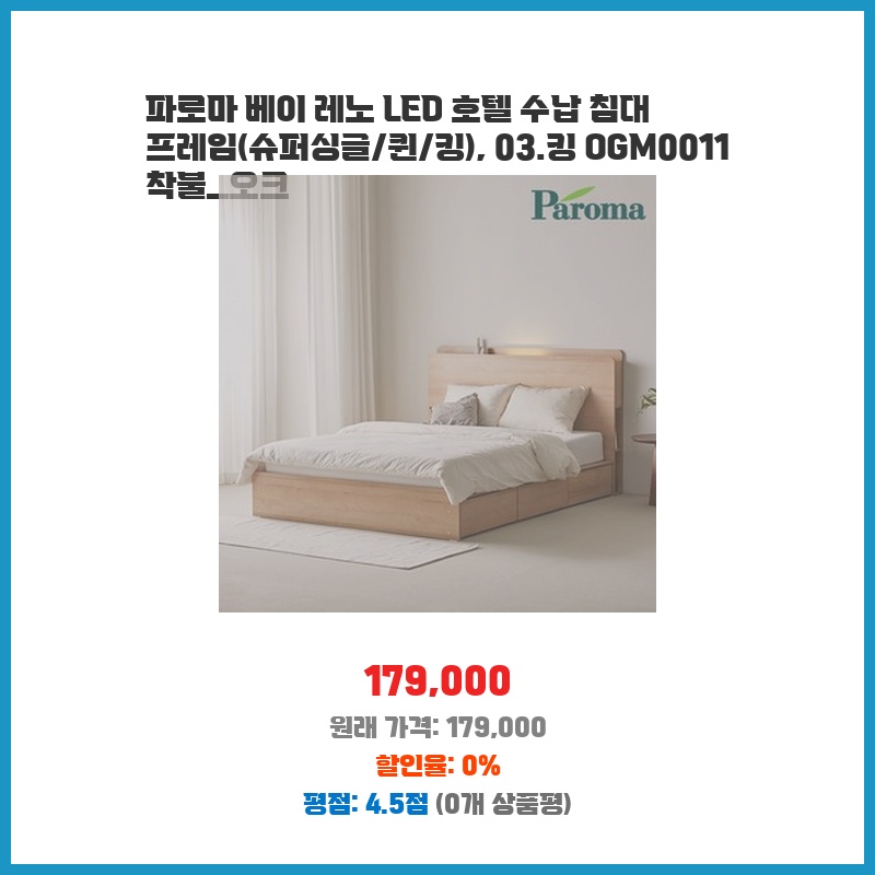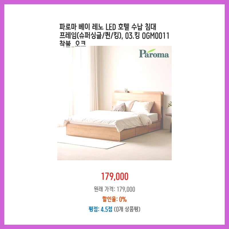 파로마 베이 레노 LED 호텔 수납 침대 프레임(슈퍼싱글/퀸/킹), 03.킹 OGM0011 착불_오크