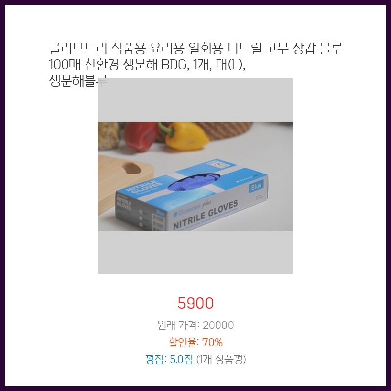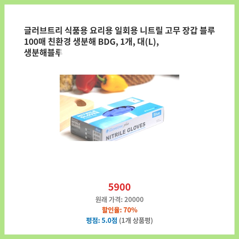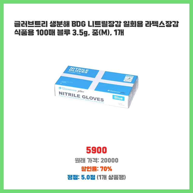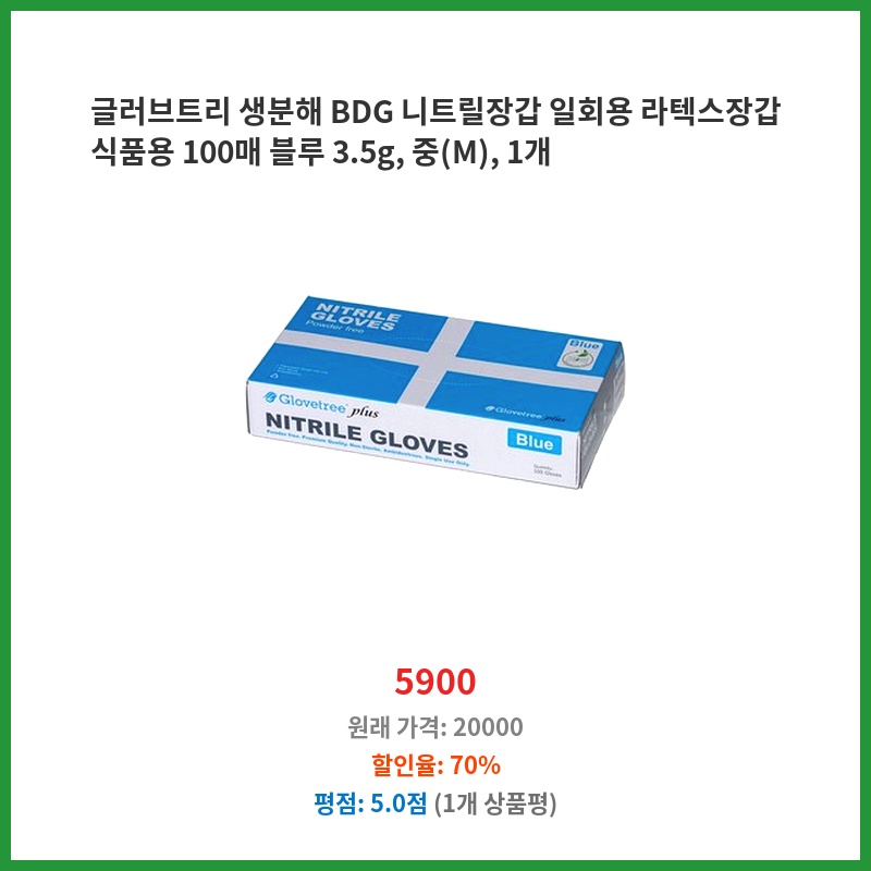 합리적 가격 글러브트리 생분해 BDG 니트릴장갑 일회용 라텍스장갑 식품용 100매 블루 3.5g 중 1개 생생한 리뷰