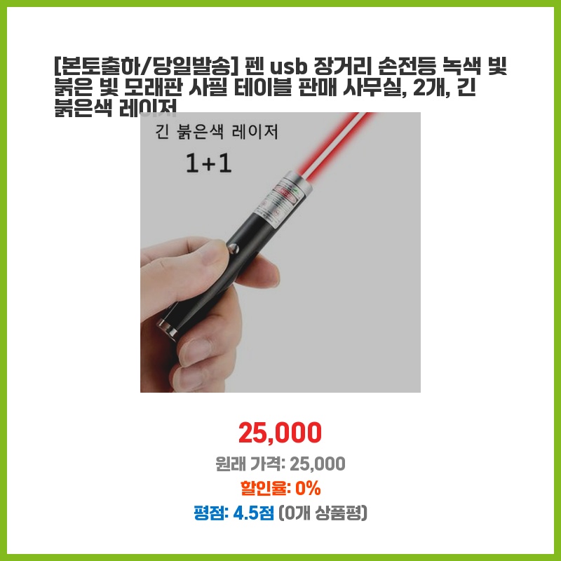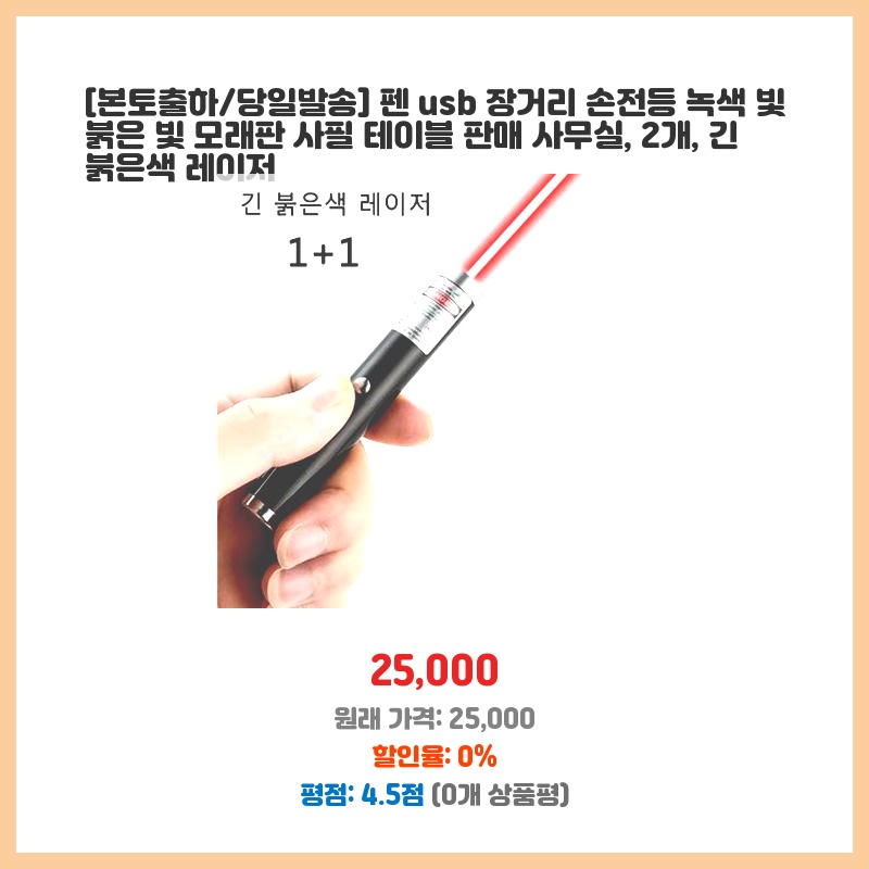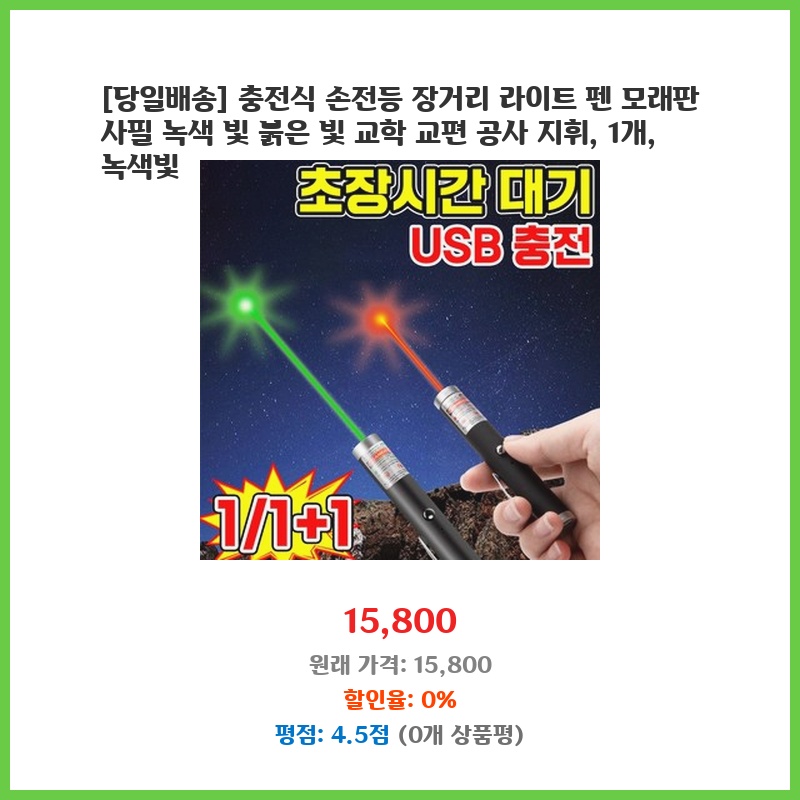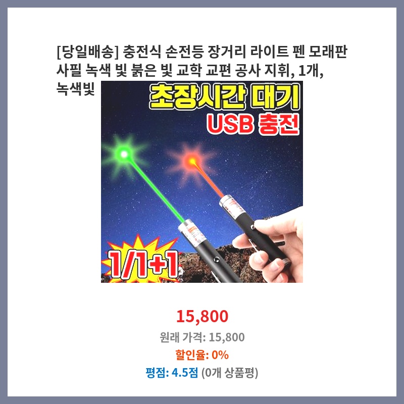 사무실에서 펜, USB, 손전등을 따로 구비하는 번거로움을 줄이고 싶어서 구매했습니다. 녹색적색 레이저 기능은 프레젠테이션 자료 지시에 유용할 것 같아 기대됩니다. 두 개 세트라 여분으로 하나 더 가지고 있어도 좋을 것 같습니다.