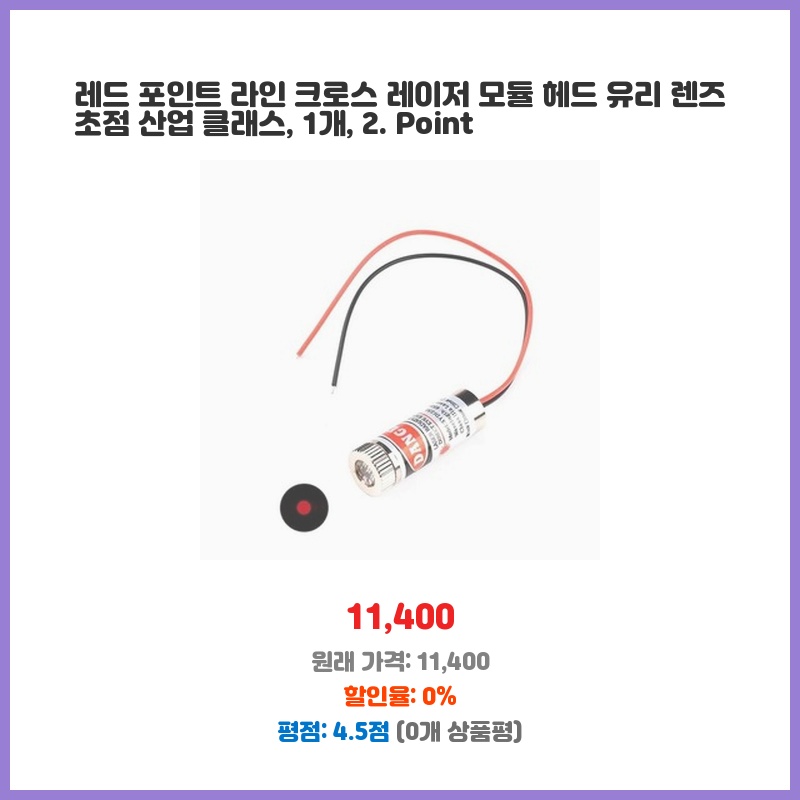 정밀한 작업에 필요한 선명한 레이저 포인트가 필요했습니다. 산업용이라 품질이 좋고, 유리 렌즈라 내구성도 기대됩니다. 가격 대비 성능이 좋아 선택했습니다.