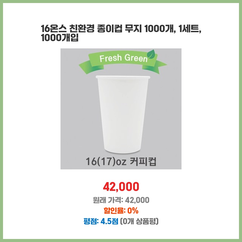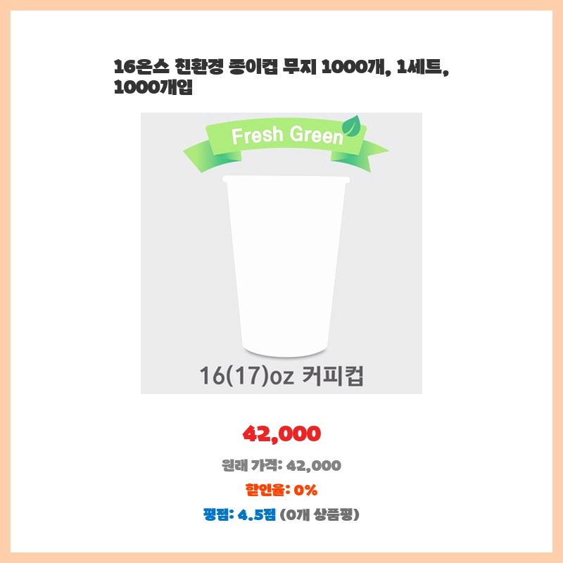 행사용으로 많은 양의 종이컵이 필요했는데, 1000개들이라 경제적이고, 친환경 종이컵이라 환경에도 부담이 덜해서 구매했습니다. 무지라 디자인 제약 없이 활용도가 높습니다.
