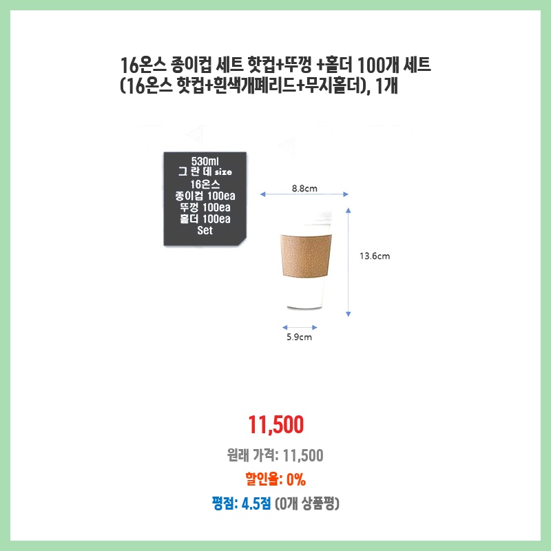 종이컵, 16온스컵, 핫컵세트, 컵홀더, 테이크아웃컵, 개폐리드, 100개세트