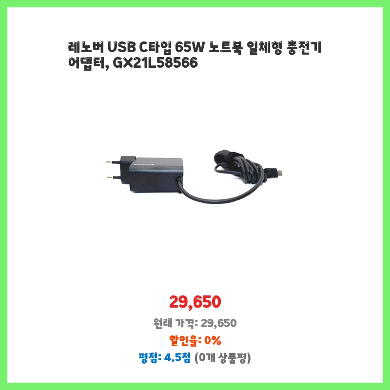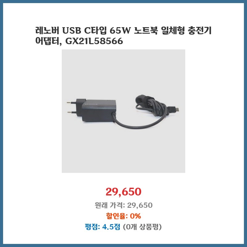 기존 충전기가 고장나서 새로 구매했습니다. 레노버 공식 제품이라 호환성이 좋고, 65W 고출력으로 빠르게 충전되는 점이 마음에 들었습니다. USB-C 타입이라 휴대성도 좋습니다.