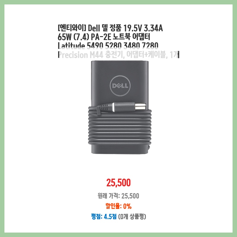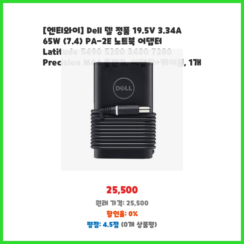 [델에서 공식적으로 제공하는 정품 어댑터로, 안정적인 전력 공급과 호환성을 보장합니다.]