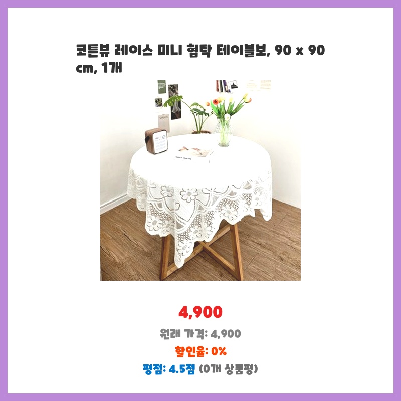 테이블 크기를 꼭 확인하고 구매하세요. 세탁 전 물빠짐 여부를 확인하는 것이 좋습니다. 레이스 특성상 섬세한 관리가 필요합니다.