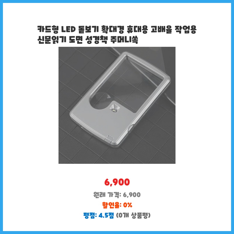 현명한 선택 카드형 LED 돋보기 확대경 휴대용 고배율 작업용 신문읽기 도면 성경책 주머니쏙 부담 없는 상품