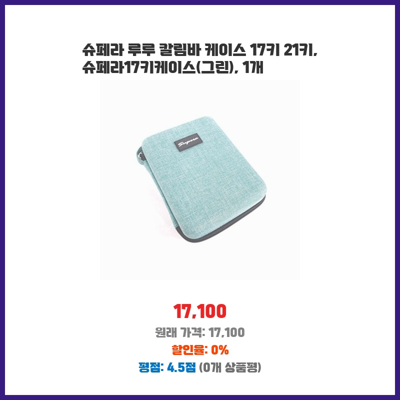 칼림바를 안전하게 보관하고 휴대하기 위해 케이스가 필요했습니다. 슈페라 케이스는 17키21키 모두 호환 가능하고, 가격도 적당하며, 그린 색상이 마음에 들어 구매했습니다. 내부 충격 방지도 잘 되어 있어 안심입니다.