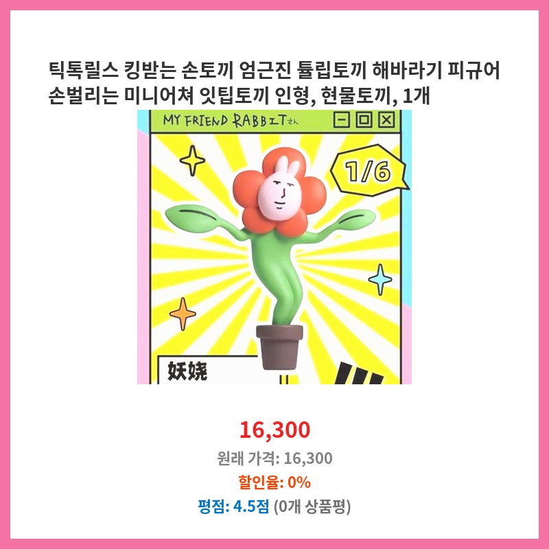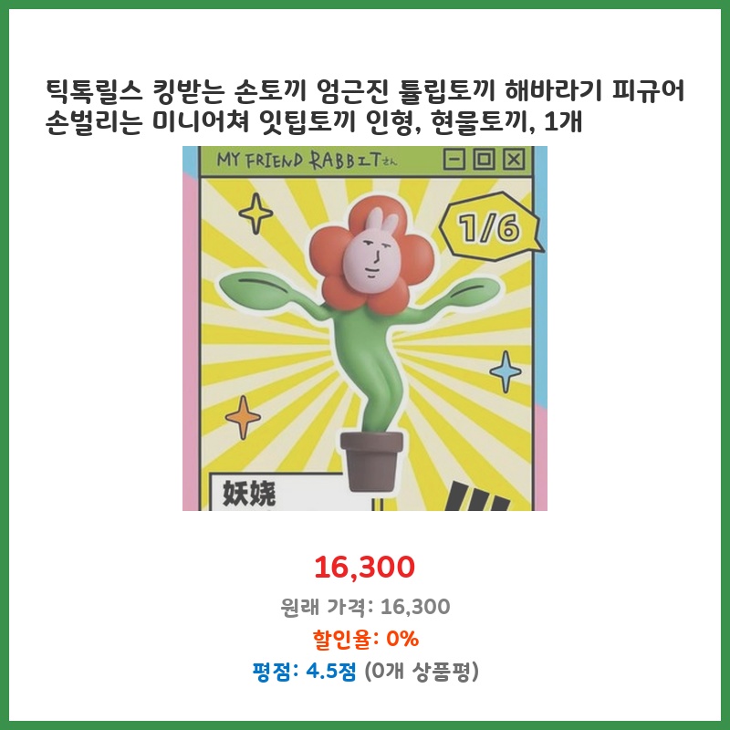 틱톡릴스피규어, 손토끼피규어, 튤립토끼, 해바라기피규어, 미니어쳐토끼, 킹받는토끼, 잇팁토끼